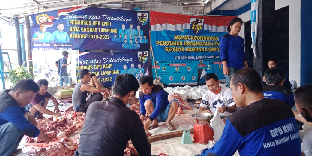 BANDAR LAMPUNG, mediarepublika.com – Di perayaan Hari Raya Qurban 1441 Hijiriyah, DPD KNPI Kota Bandarlampung Qurban 2 Ekor sapi. Pemotongan 2 Ekor Sapi tersebut berlangsung di kantor DPD KNPI Kota Bandarlampung, Jalan Jendral Sudirman, No. 8, Enggal, Kota Bandarlampung.