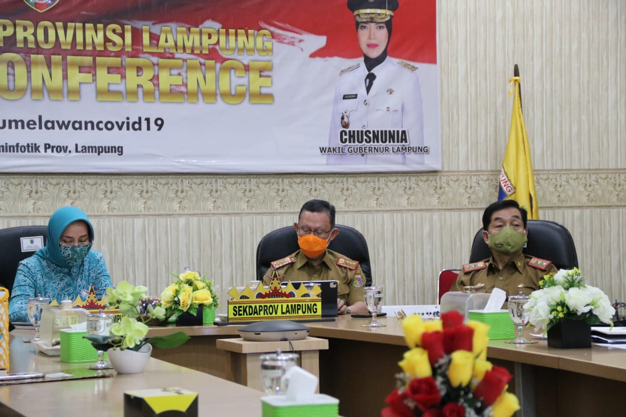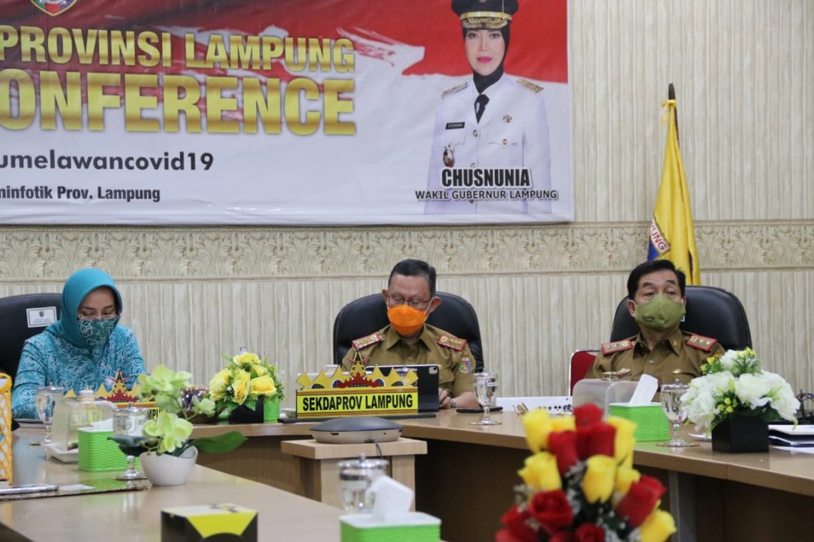 Rapat dihadiri juga oleh Ketua TP PKK Provinsi Lampung Riana Sari Arinal, Kepala Dinas Kesehatan, Plt. Kepala BPBD, Plt. Kepala Dinas Pemdes dan Transmigrasi serta Kepala Dinas Kominfo dan Statistik.