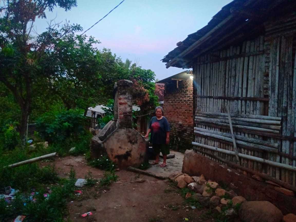 “Saya kalo ditanya-tanya kondisi rumah saya, saya pasti nangis pak. Rumah saya gentengnya banyak yang bocor, dapurnya hampir rubuh,” kata Saptinah di kediamannya.