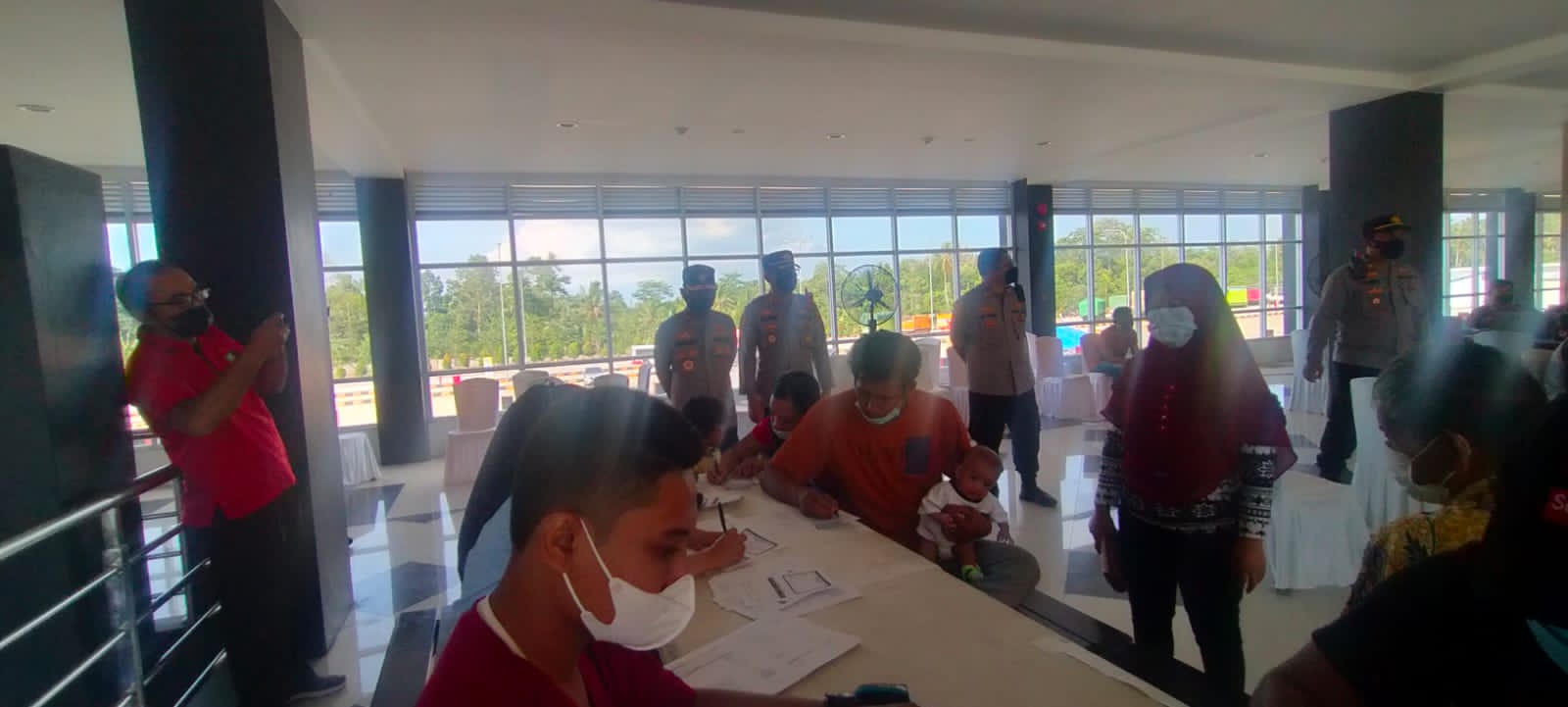 Lampung Selatan — Wakapolda Lampung Brigjen Pol Subiyanto cek kesiapan pelayanan gerai vaksinasi Presisi di rest area km 20 A dan B, di Jalan Tol Trans Sumatera (JTTS), Bakauheni, Kabupaten Lampung Selatan.