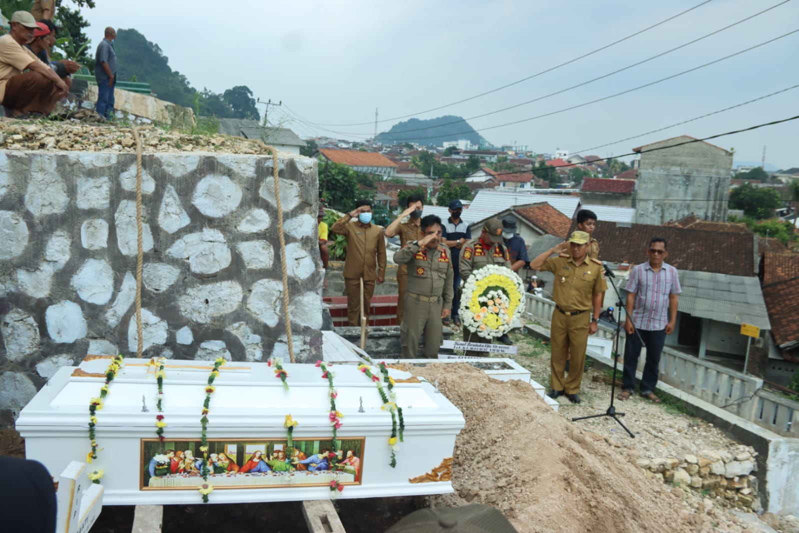 Bandar Lampung — Pemerintah Provinsi Lampung diwakili oleh Staf Ahli Gubernur bidang Ekonomi, Keuangan dan Pembangunan Zainal Abidin, secara resmi melepas jenazah Mantan Kepala Dinas Peternakan & Kesehatan Hewan Provinsi Lampung, drh. Mattheus Nurcahyo Saksono, di Pemakaman Katolik Yusuf Arimatea Kedaton, Senin (11/7).