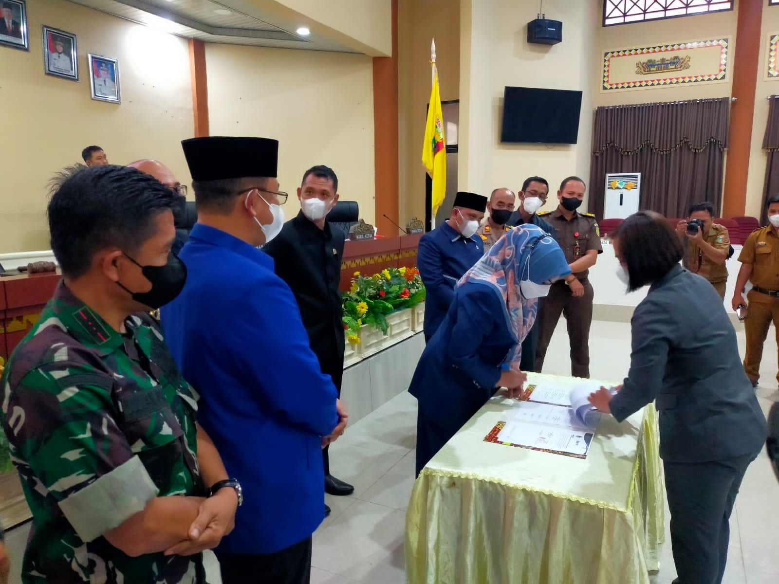 Rapat paripurna dipimpin oleh Wakil Ketua Ir. Irwandi Suralaga, S.Ag, didampingi Wakil Ketua II H.Tedi Kurniawan, S.E wakil ketua III Kurnain, S.Ip melakukan penandatanganan berita acara kesepakatan tersebut dari Gedung DPRD setempat.