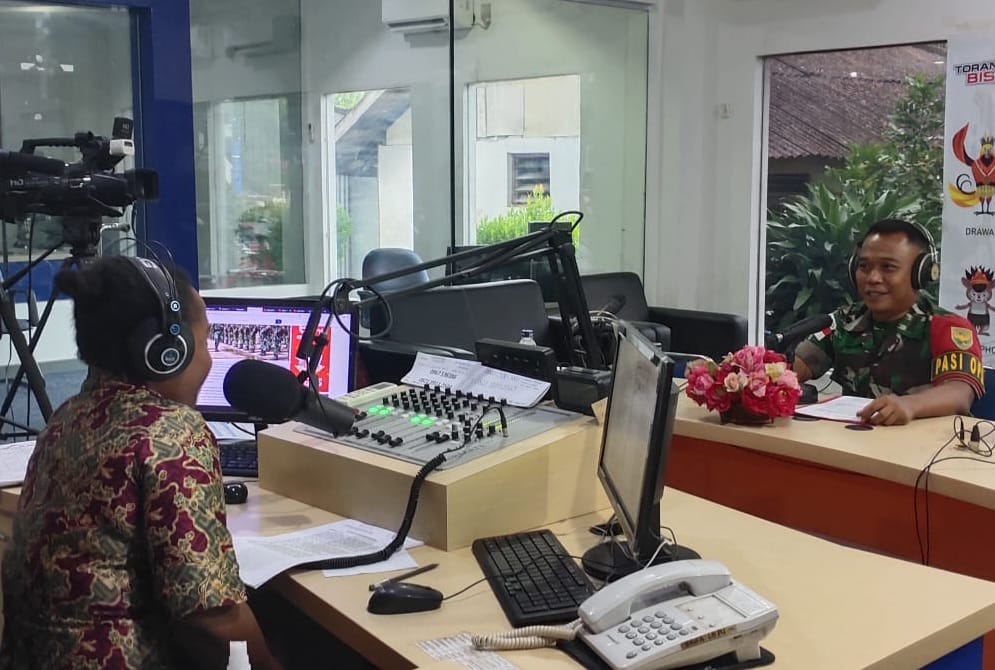 Siaran langsung yang dihadiri oleh Lettu Inf Eko Gondo Pranolo selaku (Pasi Ops Satgas Yonif 143/TWEJ) sebagai narasumber dalam dialog interaktif bersama Saudari Sofi (Reporter RRI Jayapura) menyapa masyarakat Papua melalui siaran langsung RRI Jayapura.