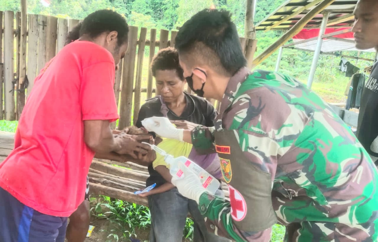 Jarak yang cukup jauh dari Puskesmas dan Rumah sakit membuat Satgas Yonif 143/TWEJ selalu terbuka dalam membantu kesulitan masyarakat salah satunya yang mengalami kendala dan masalah kesehatan karena harus mendapat perhatian dan perlakuan yang cepat.