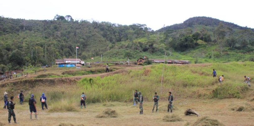 Selain anggota satgas Pos Kiwirok turut hadir dalam kegiatan tersebut Ketua Kepala Kampung bapak Selosius Taplo dan pendeta gereja Distrik Kiwirok bapak Nelson berikut masyarakat Distrik Kiwirok melaksanakan pembersihan lingkungan Kampung Polobakon.