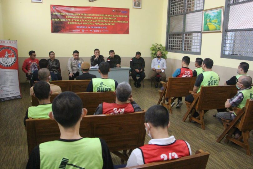 Bandung, – Rumah Tahanan negara Kelas I Bandung menerima kunjungan dalam rangka Pelaksanaan Supervisi Pemenuhan Akses Bantuan Hukum Bagi Tahanan dan Bimbingan Keterampilan dan Kepribadian Direktorat Pelayanan Tahanan dan Pengelolaan Basan Baran Direktorat Jenderal Pemasyarakatan. Jumat (16/12/2022) pada pukul 09.00 WIB di Ruang Kunjungan Rutan Kelas I Bandung.
