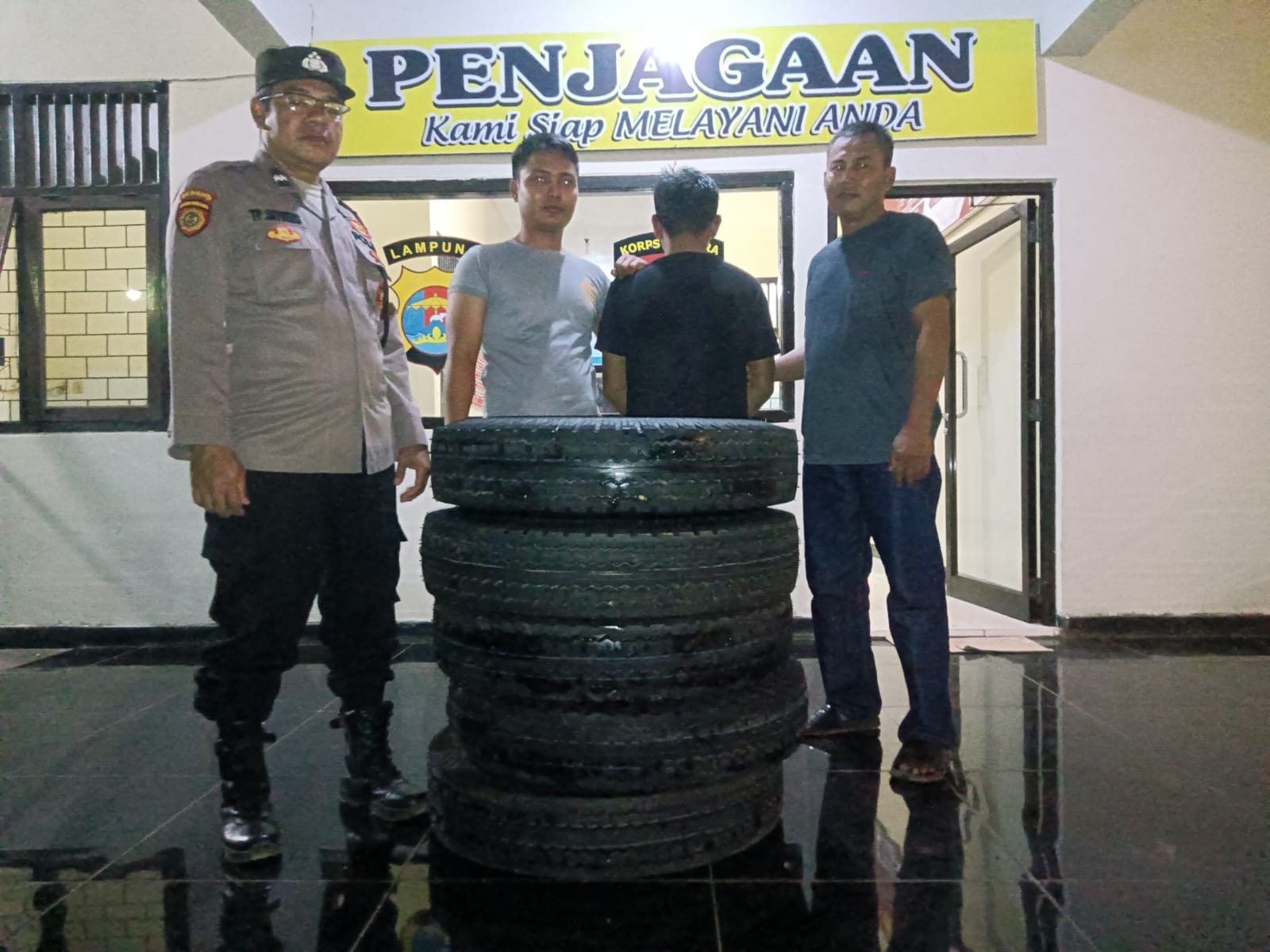 Dari tangan tersangka, Polisi juga telah menyita barang bukti berupa 5 buah ban mobil berbagai merk.
