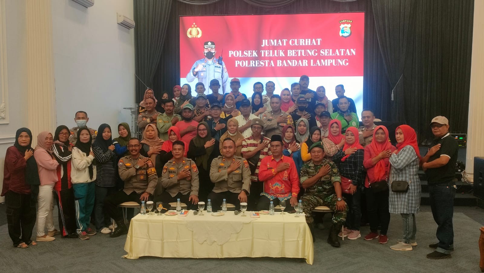 Program Jumat Curhat, Kapolsek Telukbetung Selatan mengumpulkan sejumlah warga di Jalan Ikan Tenggiri, Pesawahan, Telukbetung Selatan, Bandar Lampung, Jumat (10/2/2023). Dalam acara itu, warga curhat mengenai maraknya isu penculikan anak, aksi geng motor, ODGJ, hingga begal.