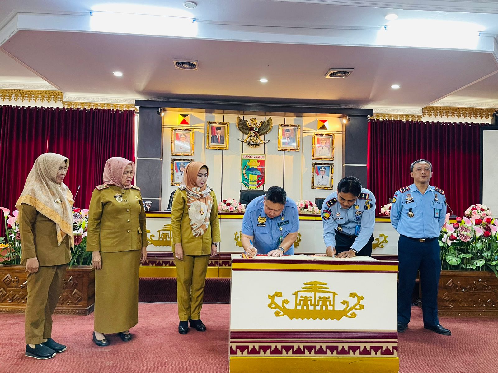 Penandatanganan ini dilakukan langsung oleh Bupati Kabupaten Tanggamus Hj. Dewi Handajani, dan Kepala Disdukcapil Tanggamus dengan Kepala Lapas Kotaagung Beni Nurrahman di Ruang Rapat Sekretariat Utama Pemerintah Daerah Kabupaten Tanggamus, dihadiri oleh instansi dan dinas terkait yaitu Asisten Perekonomian dan Pembangunan dan Kepala Bagian Kerja Sama Sekretariat Daerah Tanggamus, Inspektur Kabupaten Tanggamus, Kepala Bappeda Tanggamus serta para Kepala Dinas Kominfo, Kesehatan, Pendidikan, Lingkungan Hidup, Damkar, Perpustakaan dan Kearsipan Kabupaten Tanggamus serta Kepala UPT Layanan Dukcapil dan Camat di wilayah Kotaagung dan Kotaagung Barat.