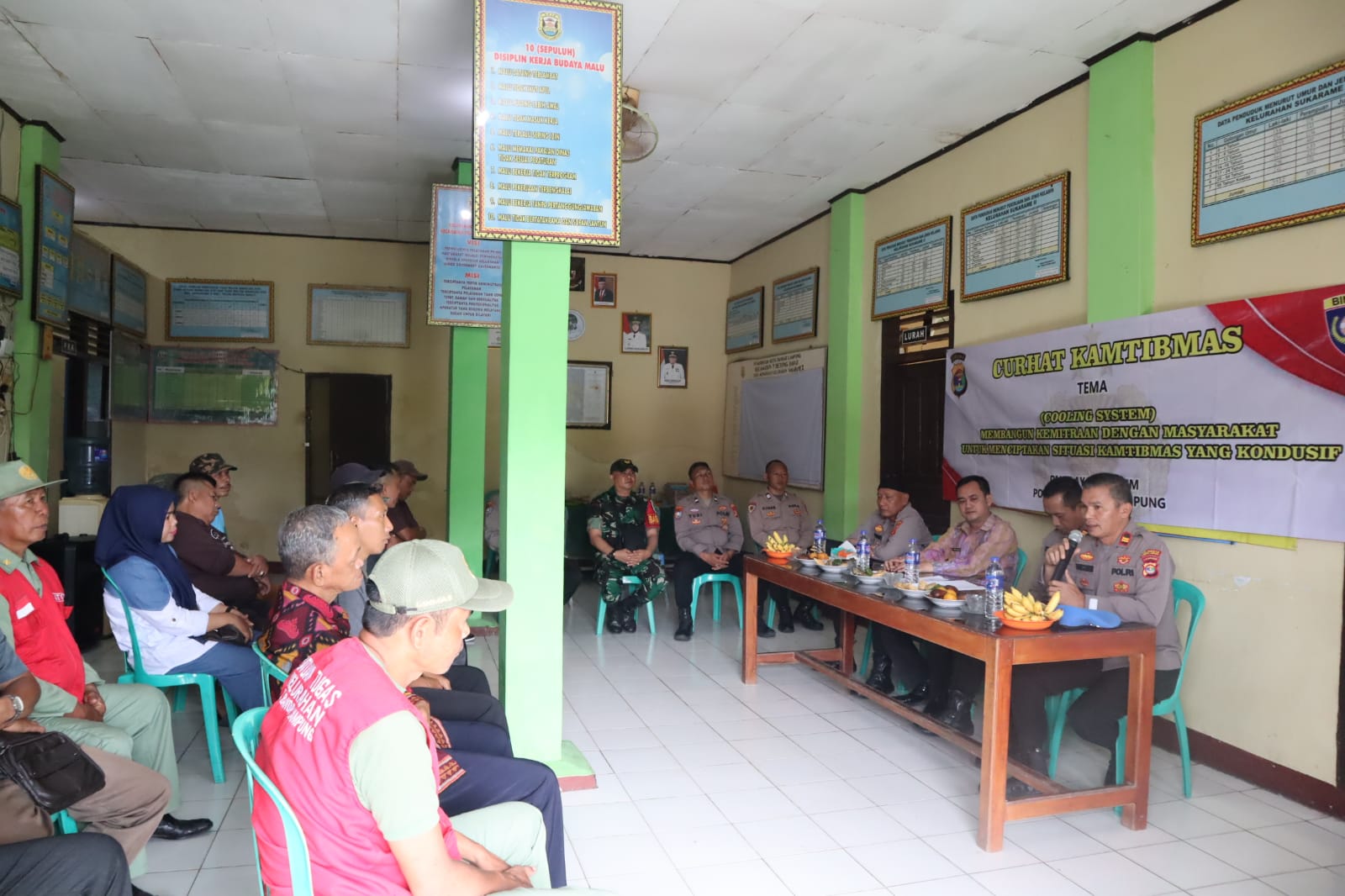 Bandar Lampung – Kepolisian Resor Kota Bandar Lampung Polda Lampung menggelar kegiatan pembinaan dan penyuluhan “Curhat Kamtibmas” sebagai sarana menjalin komunikasi dengan aparatur perangkat tingkat kelurahan dan masyarakat guna menciptakan situasi kamtibmas yang aman dan kondusif.