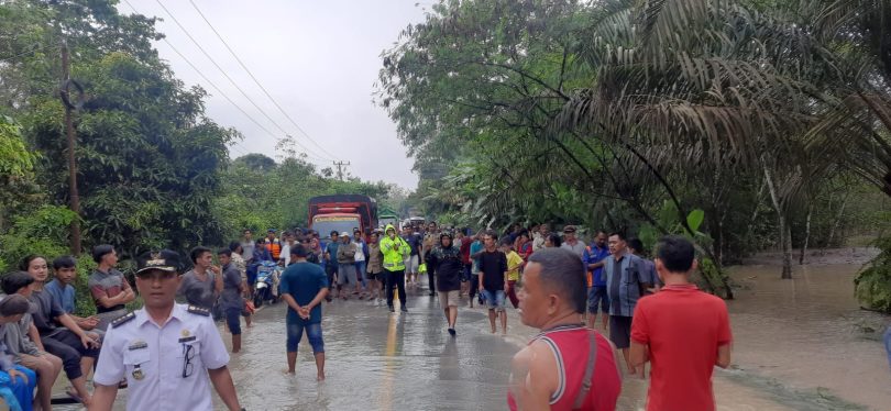 Selain itu, menurutnya, petugas kami juga telah memasang benner imbauan agar sementara waktu warga tidak melalukan aktivitas yang melewati lokasi banjir di Jalan Lintas Timur Kampung Astra Ksetra.