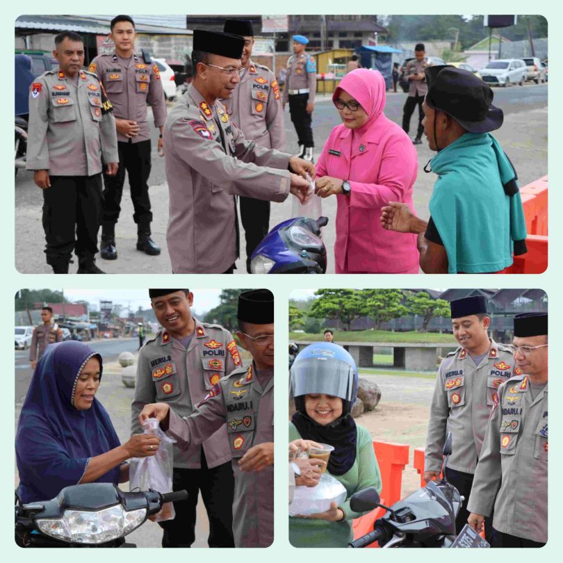 Hari ini Polres Tulang Bawang Barat membagikan takjil gratis kepada masyarakat pengguna jalan sebanyak kurang lebih 100 ta’jil.