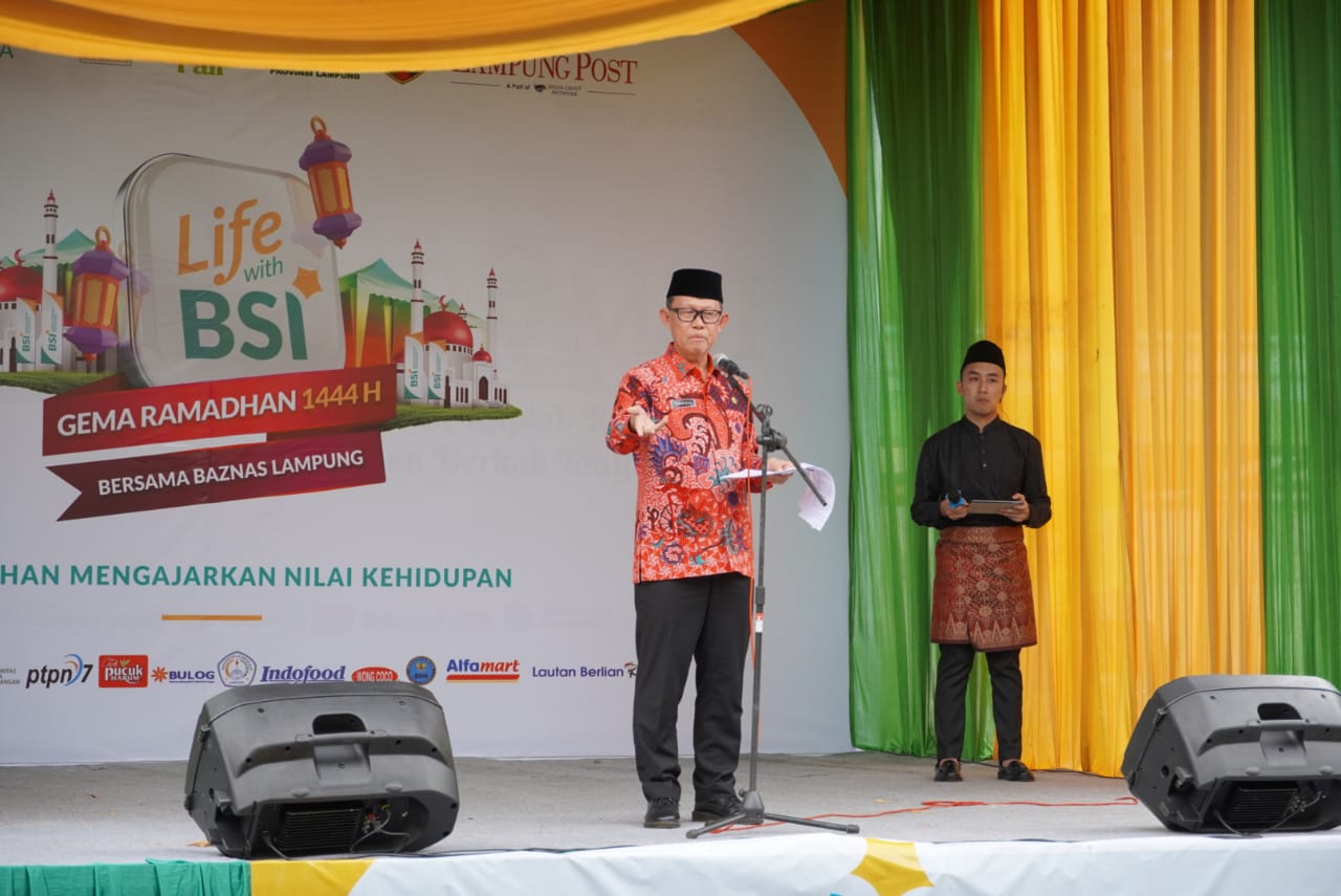 Gubernur Arinal Djunaidi dalam sambutan tertulis yang disampaikan oleh Sekdaprov Lampung menyambut baik kegiatan BSI Gema Ramadhan yang merupakan kolaborasi antara Pemerintah Provinsi Lampung, dan beberapa mitra lainnya.