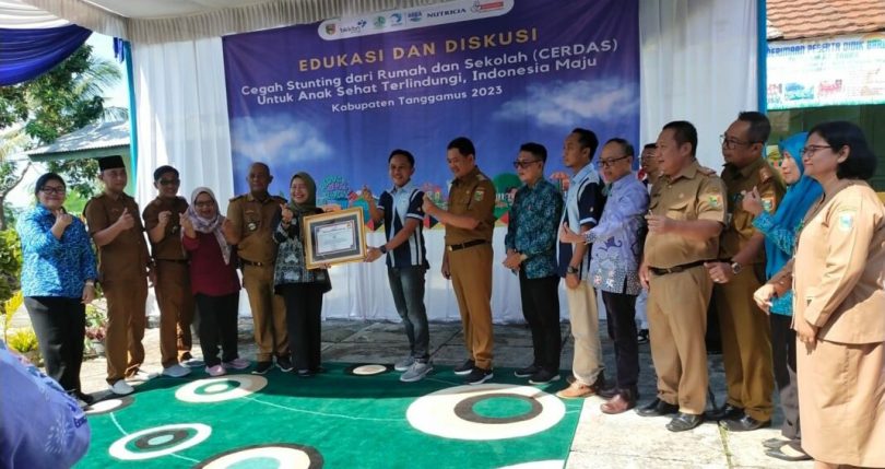 Tanggamus – Imron Hasan Kepala Pekon Kagungan Kt.Aggung Timur Menghadiri acara Edukasi dan Diskusi Cegah Stunting dari Rumah dan Sekolah Cerdas untuk anak sehat terlindungi yang digelar oleh PT. Tirta investama di Bantu Tim Yayasan Konservasi Way Seputih (YKWS) bertempat di TK Islam Az-Zahra Pasar Simpang Kotaagung Timur, Selasa (18/07/23).