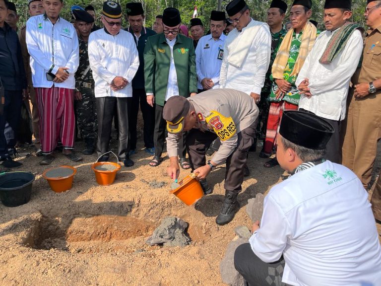 Kapolres Way Kanan AKBP Pratomo Widodo hadiri istighosah & pengajian akbar peringatan tahun baru Islam 1445 H, peletakan batu pertama gedung NU dan mushola di Dusun Sinar Baru Kampung Negeri Baru Kecamatan Umpu Semenguk Kabupaten Way Kanan. Senin (07/08/2023).
