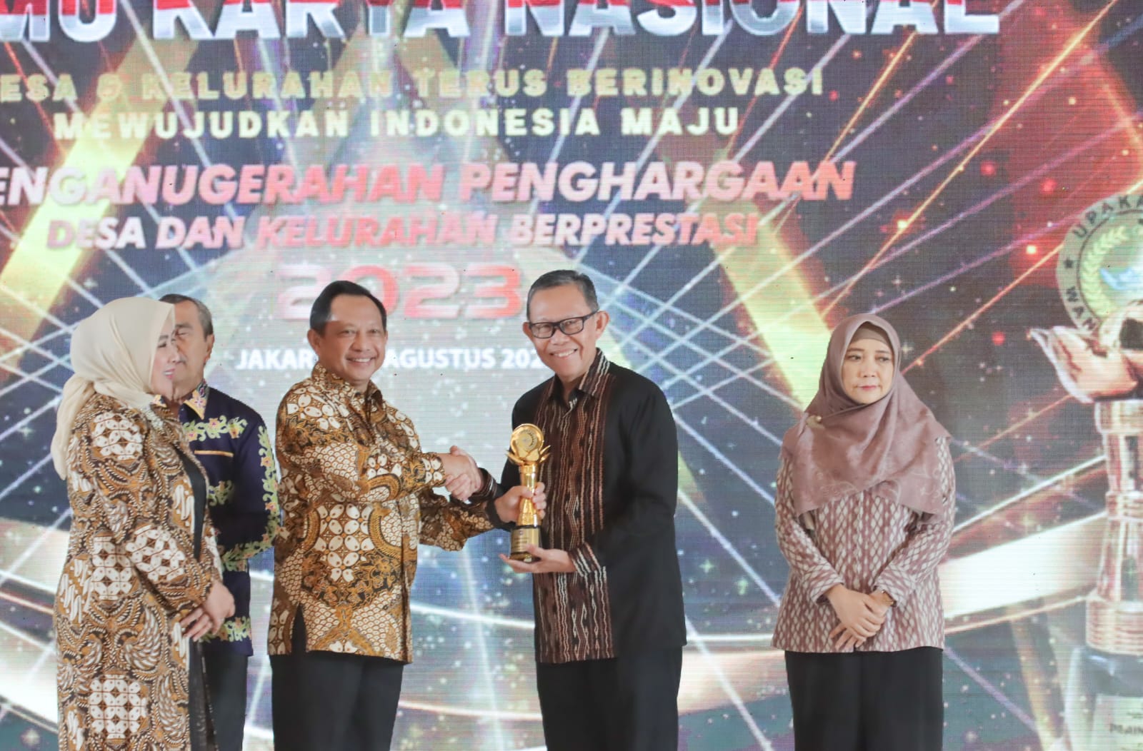 Sementara itu Penyerahan piala dan penghargaan untuk Kepala Desa dan Lurah Berprestasi diserahkan langsung oleh Direktur Jendral Bina Pemerintahan Desa Kementerian Dalam Negeri Dr. Eko Prasetyanto Purnomo Putro, S.Si, M.Si, MA. Kepada Kepala Desa Pujokerto Kabupaten Lampung Tengah dan Lurah Yosorejo Kota Metro bersama Juara dari desa dan kelurahan yang lain.