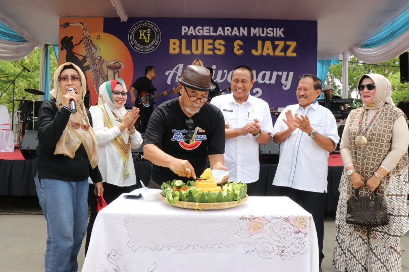 Bandar Lampung — Gubernur Lampung diwakili Staf Ahli bidang Ekonomi, Keuangan & Pembangunan, Zainal Abidin, membuka acara Pagelaran Musik Blues & Jazz dalam rangka memperingati HUT Komunitas Jalur Dua (KJ2) Way Halim yang ke-9 Tahun 2023, di Pasar Kreatif Seni PKOR Way Halim, Rabu (22/11/23).