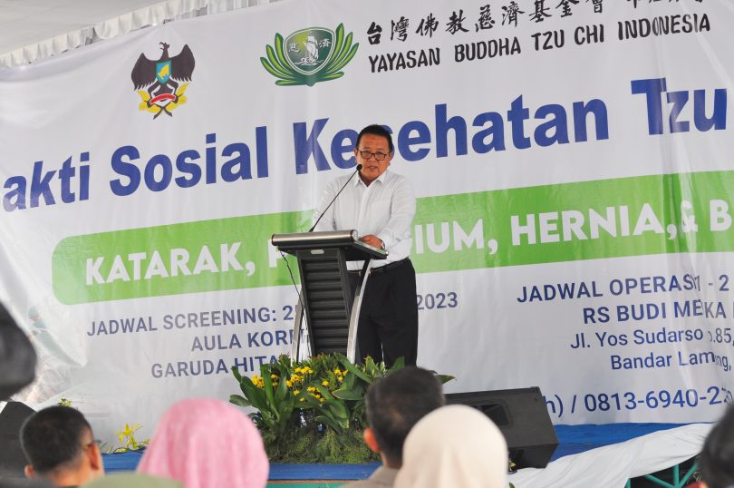 Bandar Lampung – Gubernur Lampung Arinal Djunaidi menghadiri acara Operasi Gratis Bakti Sosial Kesehatan Tzu Chi ke -142 di Halaman Rumah Sakit Budi Medika, Jum’at (1/12/2023).
