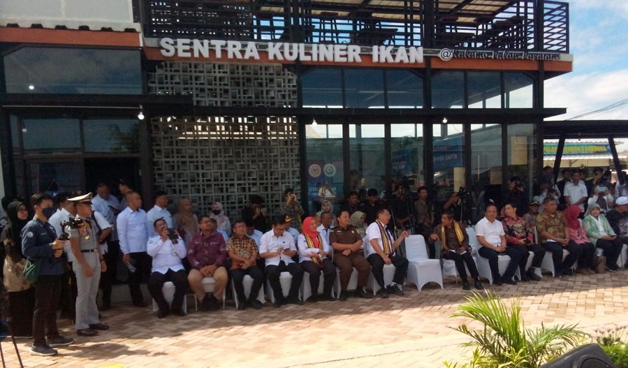 Gubernur Arinal Djunaidi bersama Ketua Komisi IV DPR RI dan Dirjen PDSPKP KKP dan Walikota Bandarlampung Eva Dwiana meresmikan Kampung Nelayan Modern (Kalamo), di Pulau Pasaran Kota Karang, Rabu (7/2/2024).