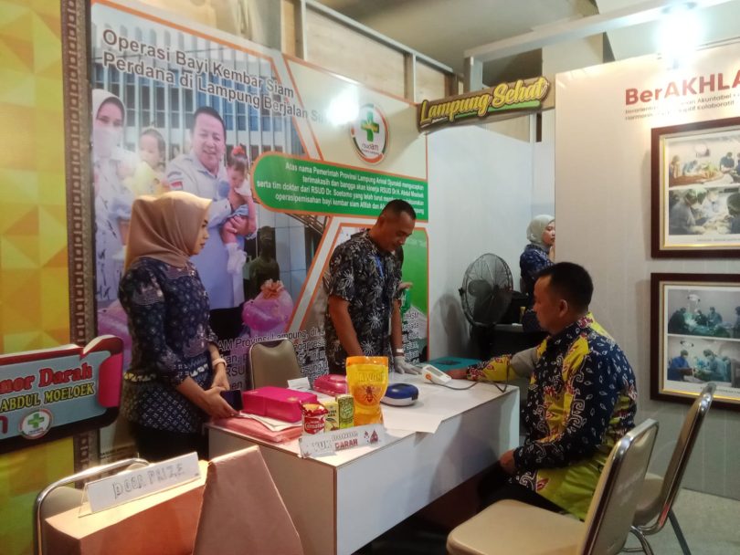Dalam hal ini Direktur RSUDAM, dr. H.Lukman Pura, SP. PD., K-GH., MHSM, menyempatkan diri untuk mengunjungi stan dan ikut periksa kesehatan geratis yang berada di stan rumah sakit Umum Daerah Dr. H. Abdul Muluk