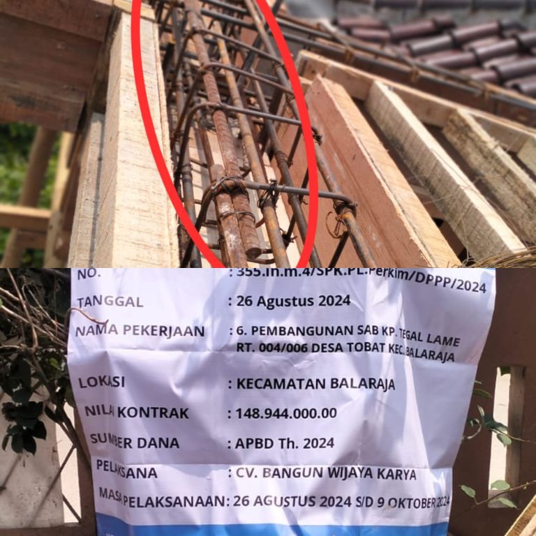 Tanggerang, – Pekerjaan pembangunan sarana air bersih SAB yang berlokasi di kampung Tegal RT 04/06 desa tobat kecamatan Balaraja Kabupaten Tangerang Banten diduga memanipulasi proyek pembangunan SAB dan diduga tidak sesuai spesifikasi teknis. Kamis 26 September 2024.