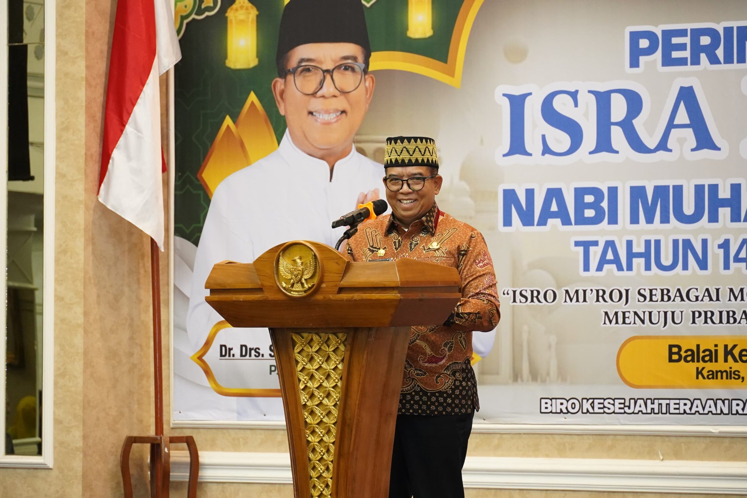 Pj. Gubernur Samsudin menerangkan bahwa Isra Mi’raj bukan sekadar peristiwa sejarah untuk dikenang, melainkan sebuah momen spiritual yang sarat dengan makna dan hikmah. Perjalanan Rasulullah SAW dari Masjidil Haram ke Masjidil Aqsa, kemudian naik ke Sidratul Muntaha, mengajarkan tentang kekuatan iman, keteguhan hati, dan pentingnya mendekatkan diri kepada Allah SWT.
