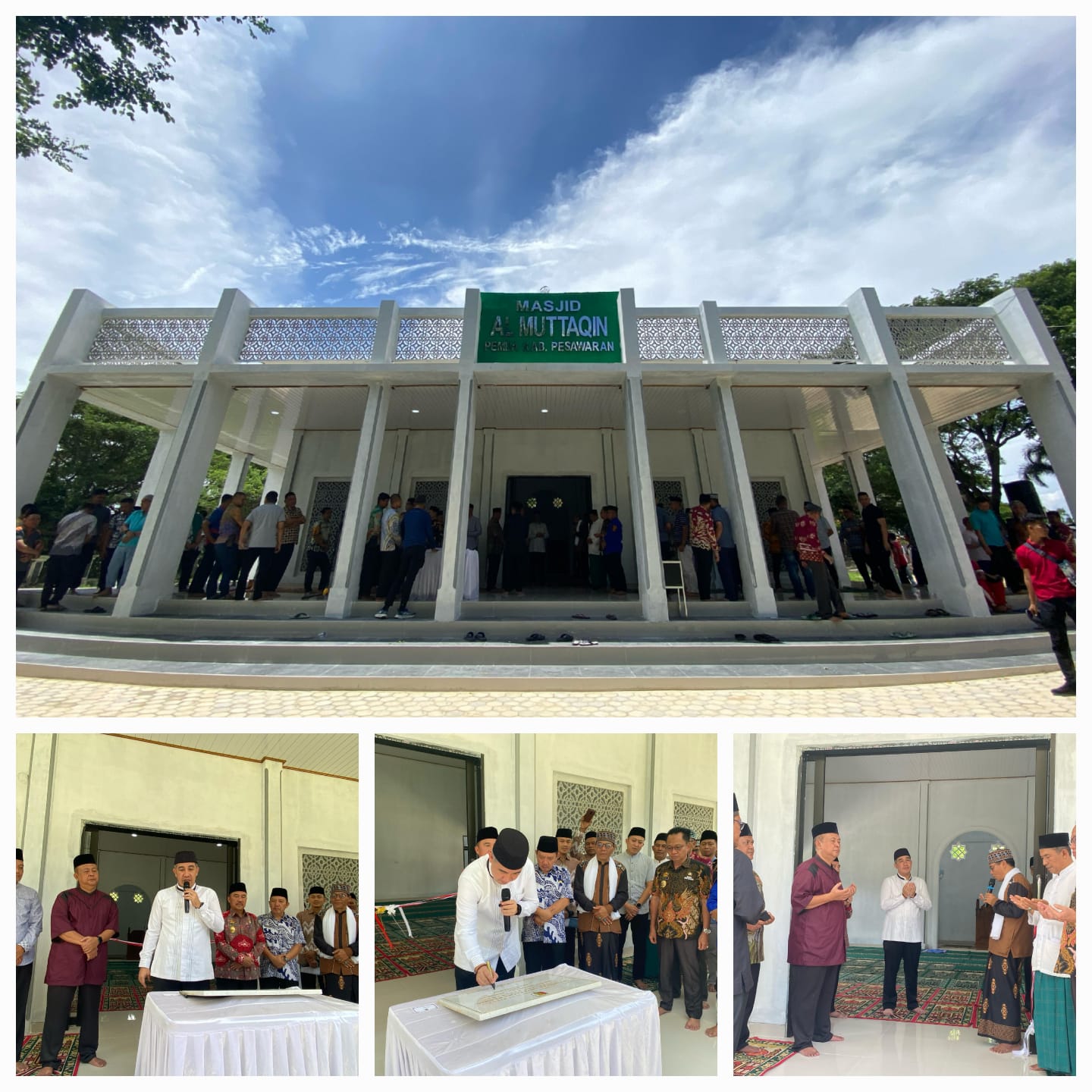 Peresmian masjid ditandai dengan pemotongan pita dan penandatanganan prasasti yang dilakukan usai salat Jum’at berjamaah yang dilakukan bersama Sekretaris Daerah Wildan, para asisten, kepala dinas, serta jajaran pejabat dan pegawai di lingkungan Pemkab Pesawaran.