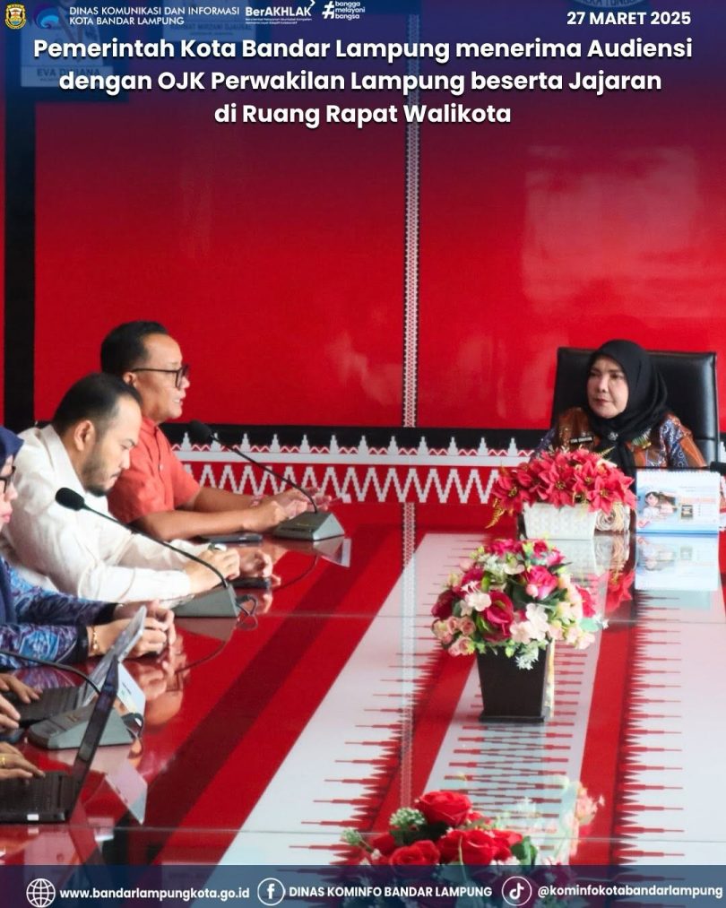 Pemerintah Kota Bandar Lampung menerima Audiensi dengan OJK Perwakilan Lampung beserta Jajaran di Ruang Rapat Walikota, Kamis (27/3/2025).