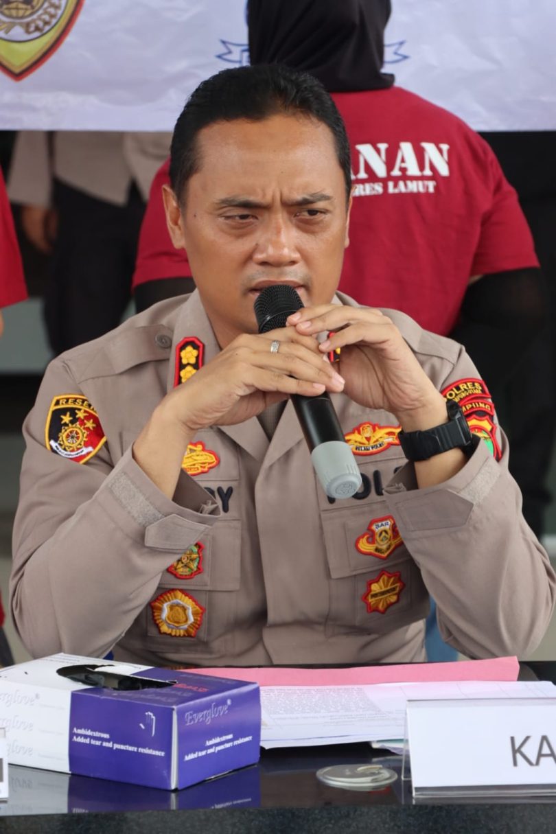 “Setelah mendapat informasi keberadaan pelaku lalu anggota melakukan penangkapan terhadap Pelaku BS saat berada di rumahnya,” kata Kapolres AKBP Deddy saat menggelar Konferensi Pers. Jumat (23/5/25).