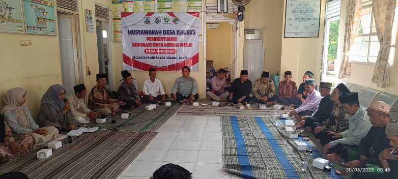 Serang, – Berdasarkan Petunjuk Pelaksanaan Menteri Koperasi Republik Indonesia Nomor 1 Tahun 2025 tentang Pembentukan Koperasi Desa Merah Putih. Pemerintah Desa Angsana Kecamatan Mancak melaksanakan kegiatan Musyawarah Desa Khusus Pembentukan Koperasi Desa Merah Putih pada Jum’at (30 Mei 2025) di Aula Kantor Desa Angsana. Kegiatan tersebut dihadiri oleh Tim Monitoring Kecamatan, Nuriman Kepala Desa Angsana beserta Perangkat Desa, BPD, Lembaga Desa, Tokoh Masyarakat, Tokoh Pemuda, Tokoh Perempuan, Pelaku UMKM.