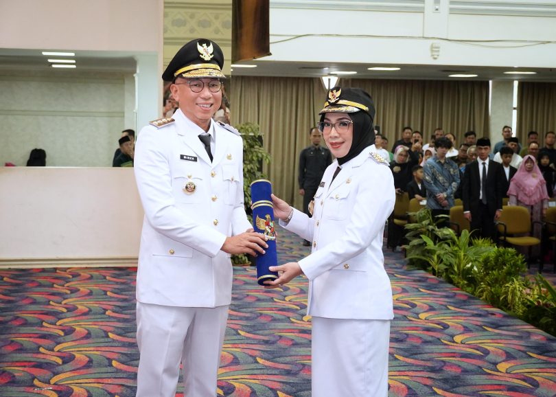 BANDARLAMPUNG—Gubernur Lampung, Rahmat Mirzani Djausal melantik dan mengambil sumpah jabatan Ayu Asalasiyah sebagai Bupati Way Kanan, Provinsi Lampung, bertempat di Balai Keratun Lantai 3, Kantor Gubernur Lampung, Selasa (10/06/2025).