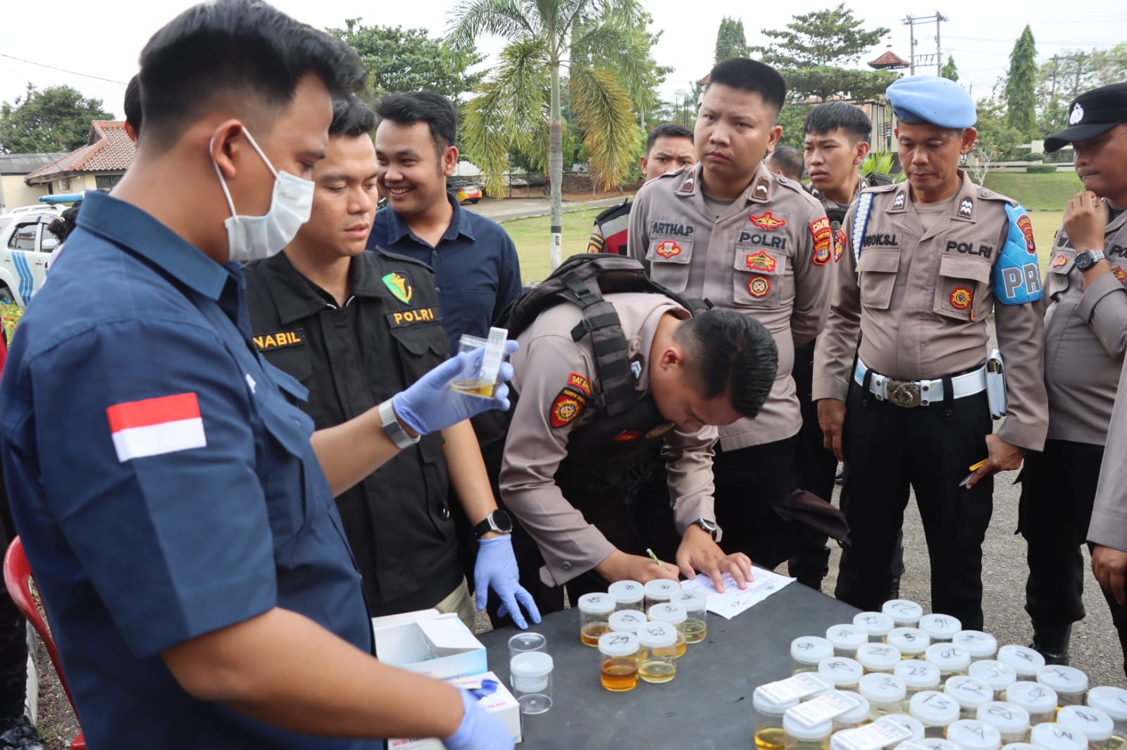 Tim Bid Propam Polda Lampung melakukan pemeriksaan tampang, kelengkapan pribadi hingga tes urine kepada personel Polres Lampung Utara.