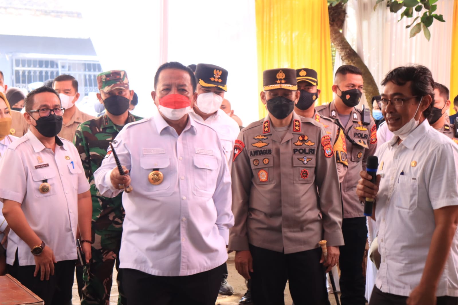 LAMTENG—Gubernur Lampung Arinal Djunaidi meninjau kegiatan Pemilihan 82 Kepala Kampung Serentak Tahun 2022 di Lampung Tengah, di Balai Kampung Wates, Kecamatan Bumi Ratu Nuban, Lampung Tengah, Rabu (24/08/2022).